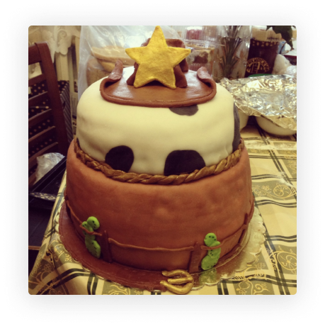 А на один из праздников я хотела заказать серьезный, красивый и большой торт! Кондитер отказала мне 4 раза подряд и я решила, что вот! Вот он мой шанс, попробую приготовить его сама. Тематика была Дикий Запад, а торт я решила покрыть мастикой. Впервые и даже не посмотрев обучающие ролики. К слову, два дня я готовила этот торт и вот таким он у меня получился
